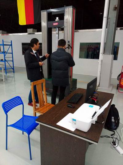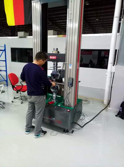 該公司使用三思泰捷的萬能試驗(yàn)機(jī)主要用于航空材料的力學(xué)測(cè)試,圖為產(chǎn)品測(cè)試中。